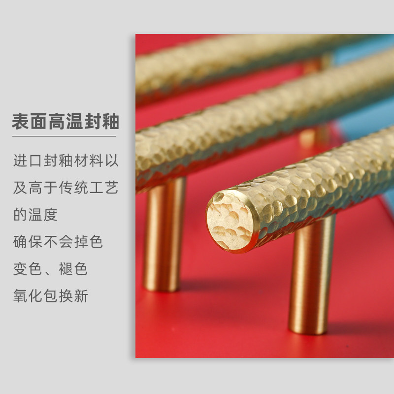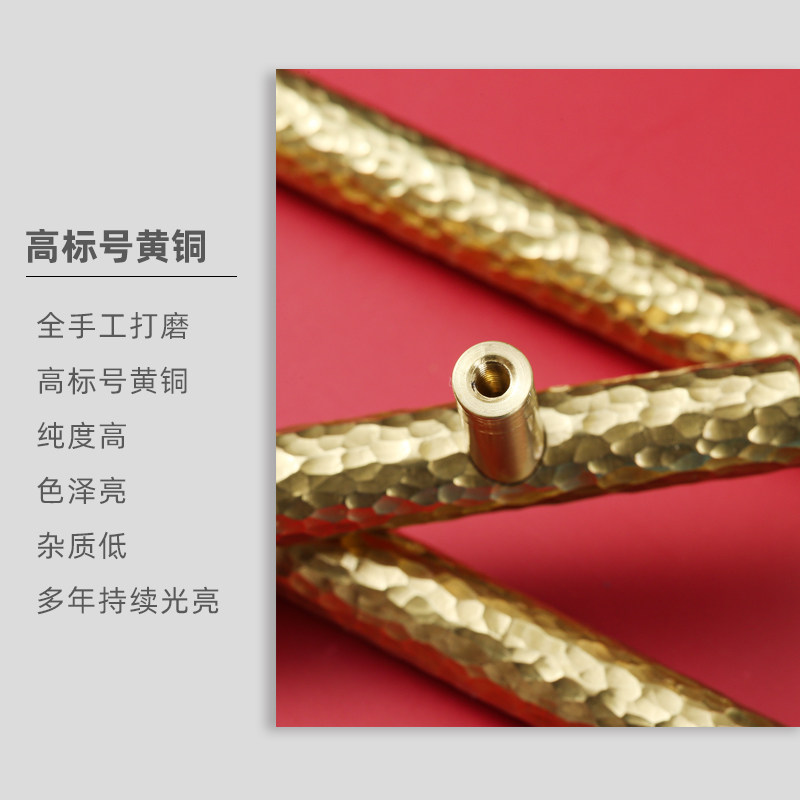 Golden Nordic cupboard hammer stride full brass brass pure copper handle overall cupboard wardrobe door handle door metal light lavish