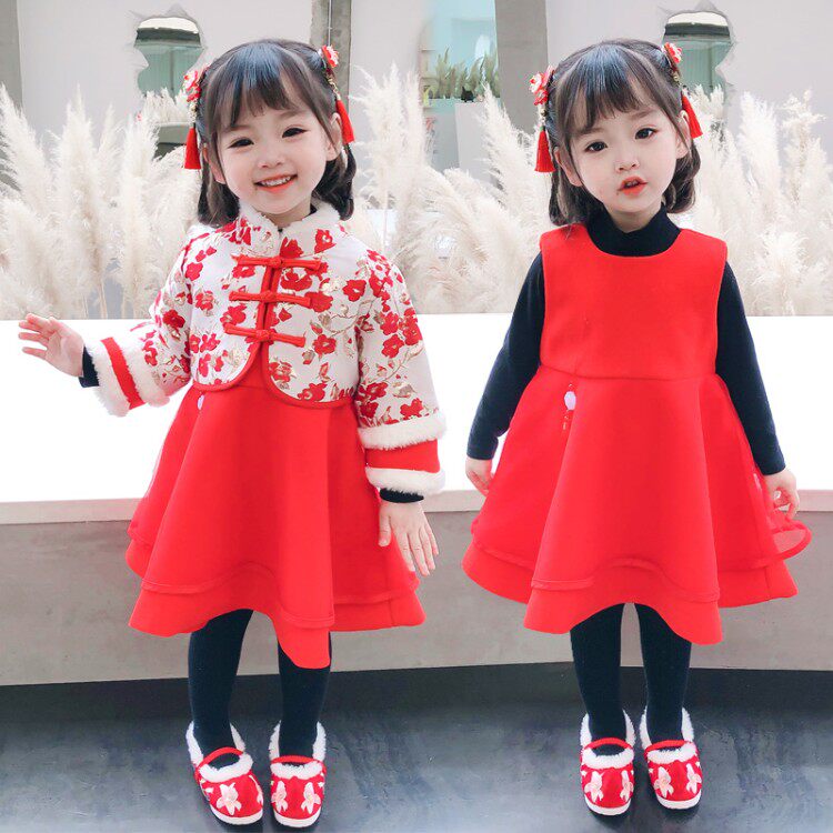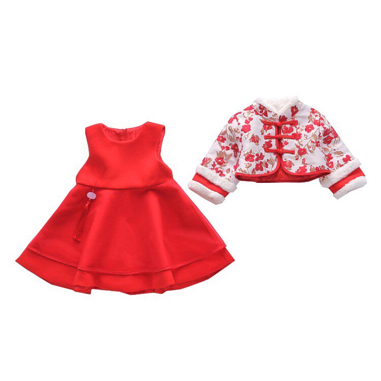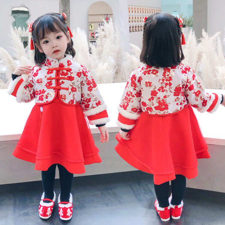 Girls' Year of the Year Conqueror's winter clothing Hanfu year-old baby Down with children Chinese Wind Thickened Ancient Dress Qipao Skirt two sets
