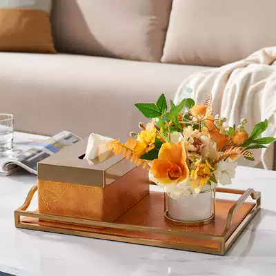 European light luxury rectangular leather toilet paper box Household living room coffee table Dining table tissue box Desktop practical decoration