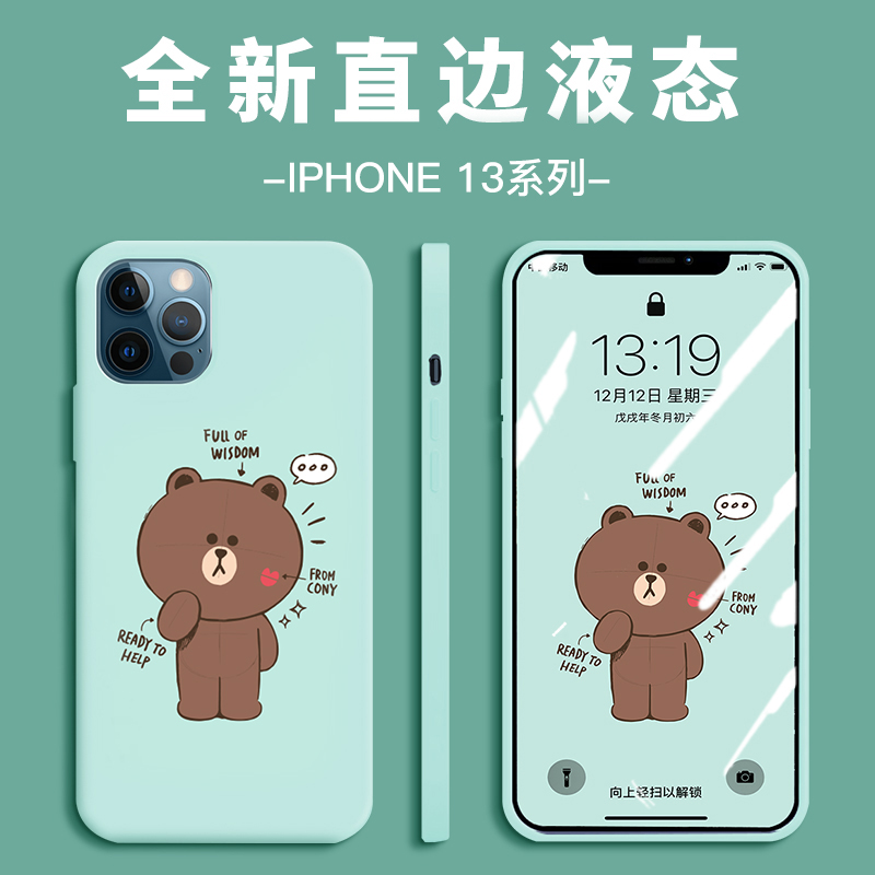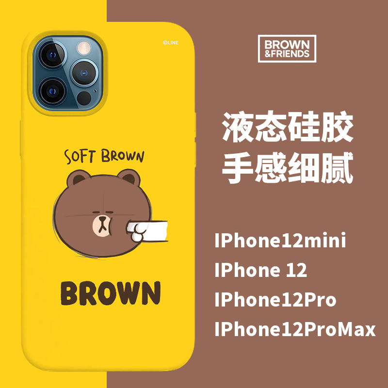 Korea LINE Brown Bear iPhone 13 Mobile Protect Case Pro Cute Max Cartoon Apple 12 Liquid Silicone Sheet Woman