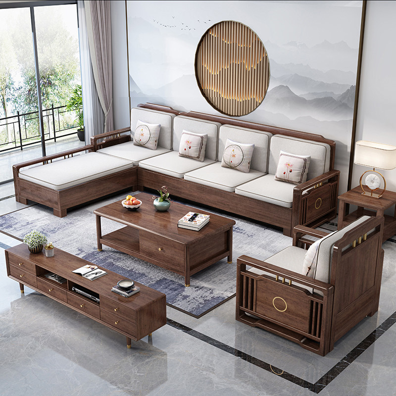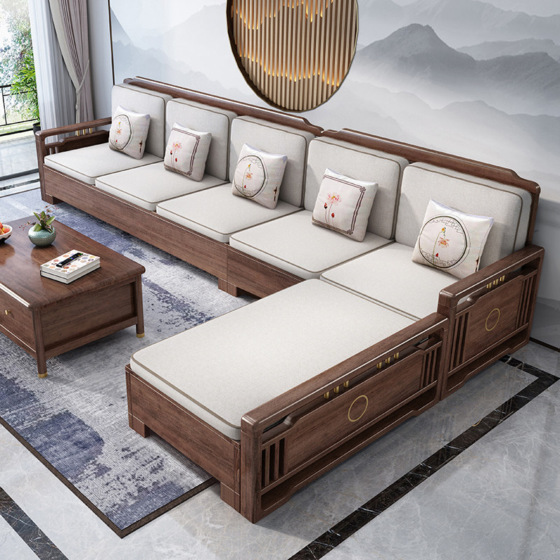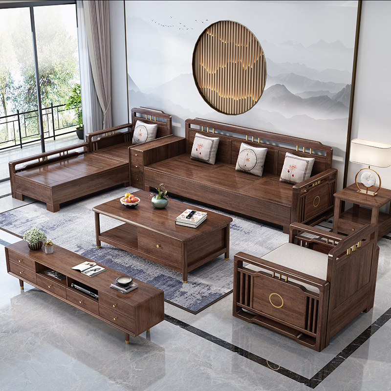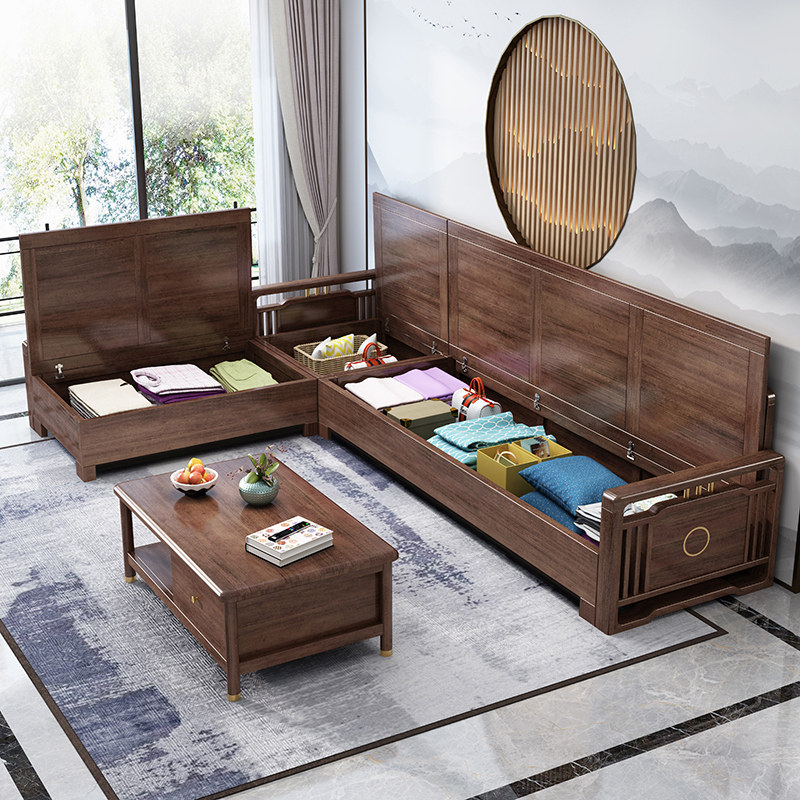 New Chinese-style solid wood sofa combination living room winter and summer dual-use modern minimalist walnut storage small apartment all solid wood