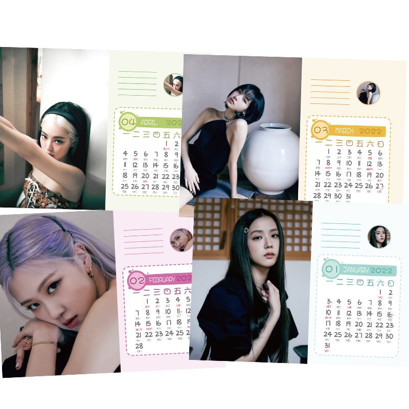 BLACKPINK Pink lisa Kim Ji-soo Kim Ji-ni JENN Women's Group 2021-2022 Biannual Calendar Accessories