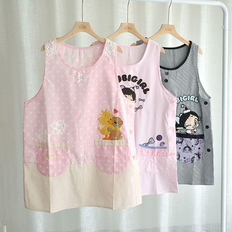 Exported to Japan Single Adult Cartoon Embroidery Kitchen Baking Painting Overcoat Household Anti-Dirty Clothes Women's Sleeveless Apron