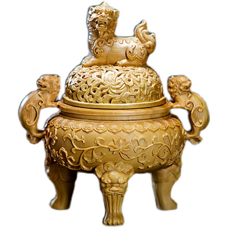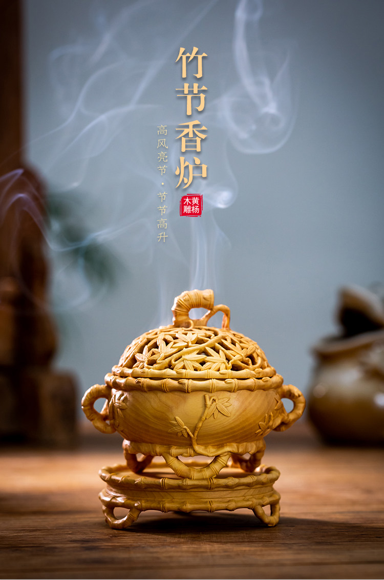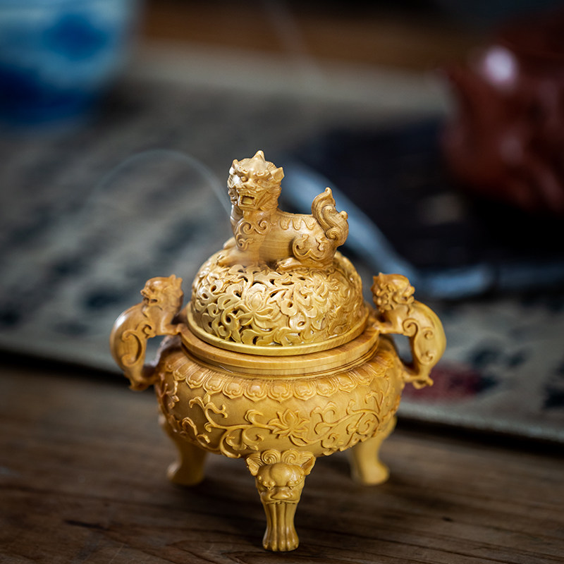 Boxwood carving handle Solid wood carving Da Sheng incense burner Home ring incense incense incense burner Handicraft decoration