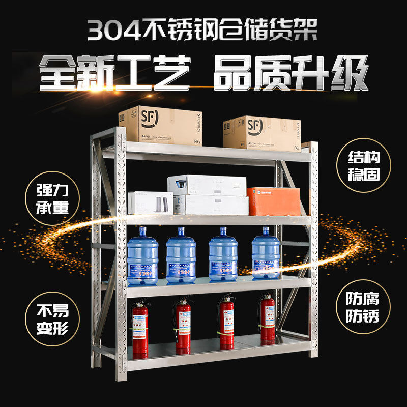 304 stainless steel shelf Commercial multi-layer heavy warehouse storage shelf Household basement shelf customization