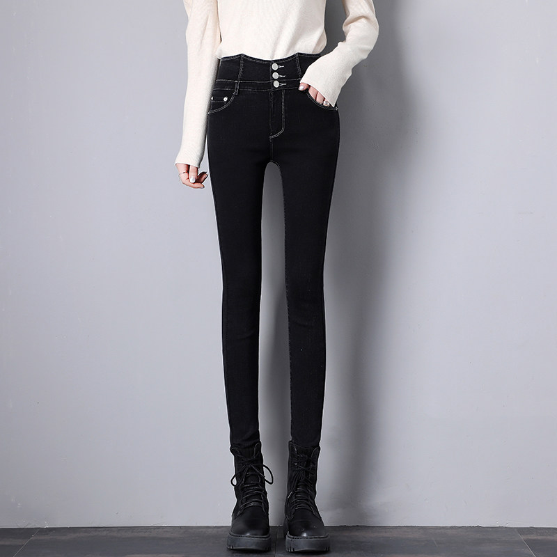 Hong Kong autumn thin high waist and high strength small foot pencil pants wear bottom lengthened jeans