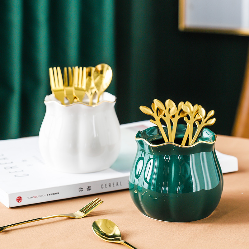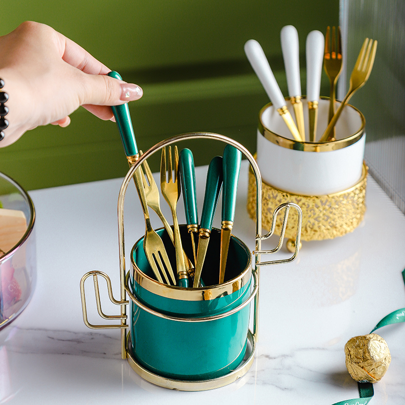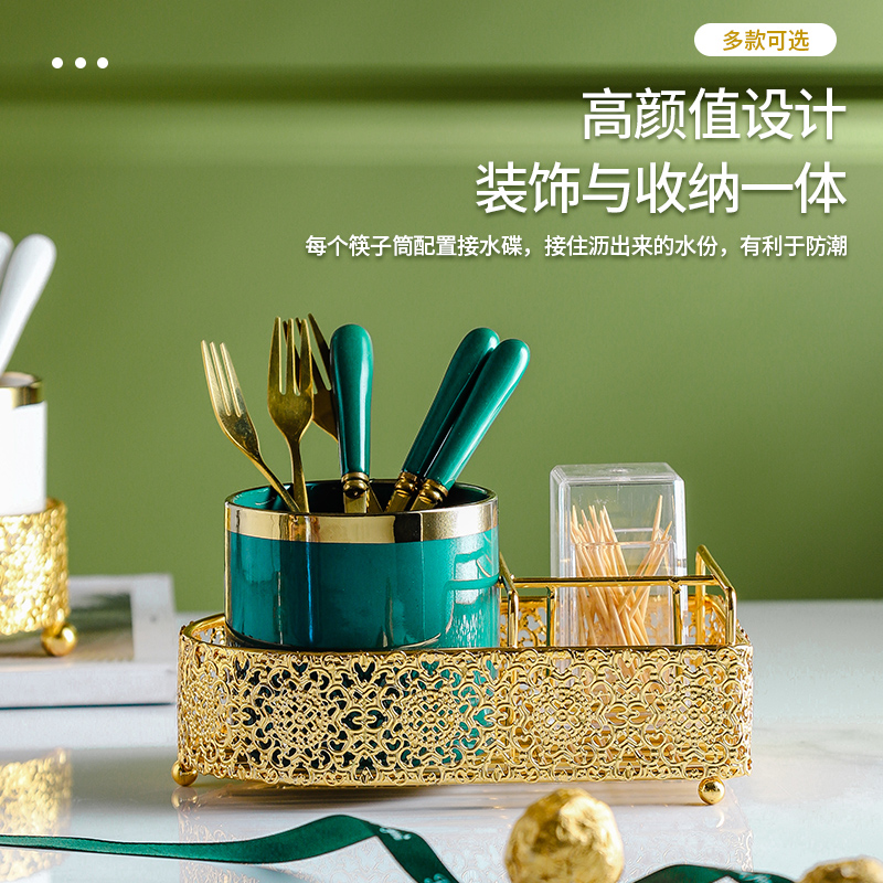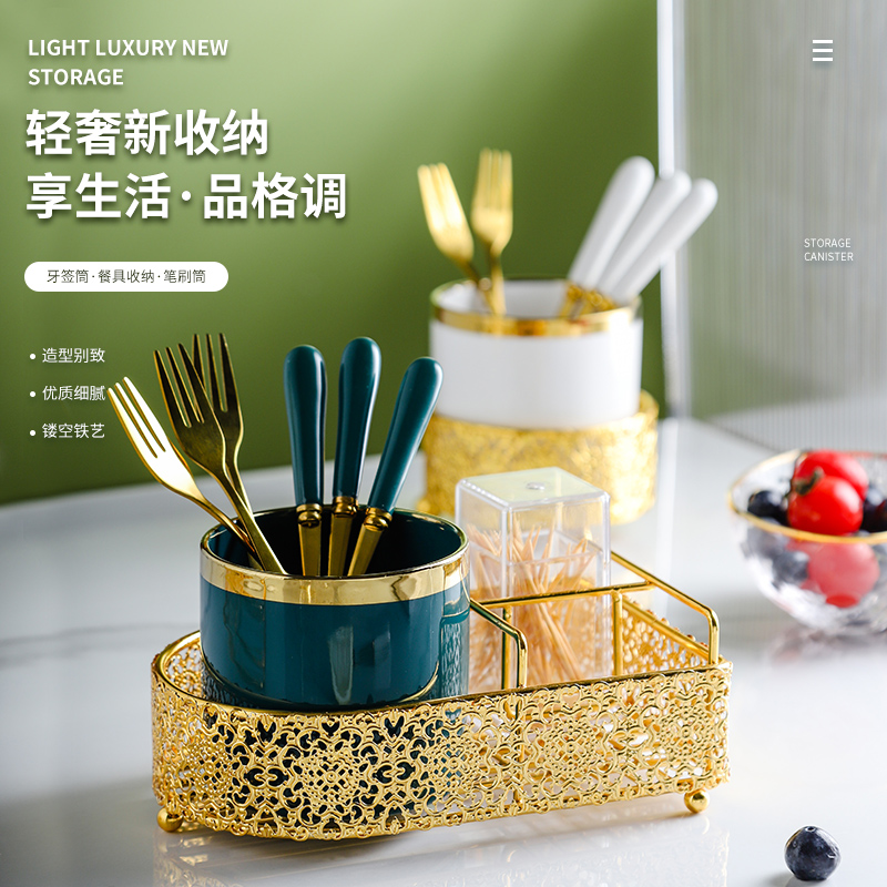 Green fork tank 3 grid gold frame 6 fork toothpick tube