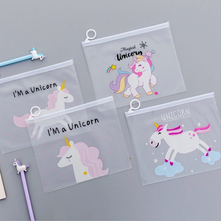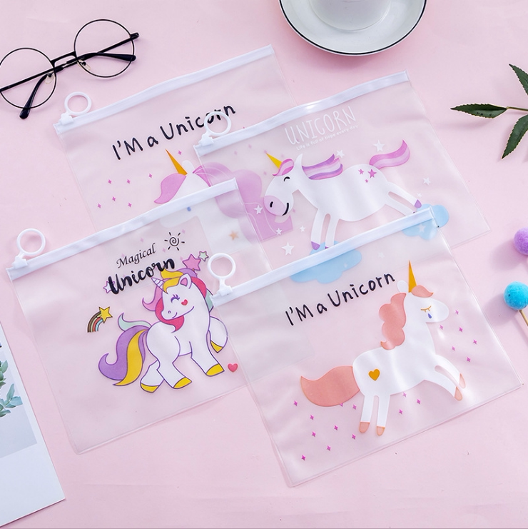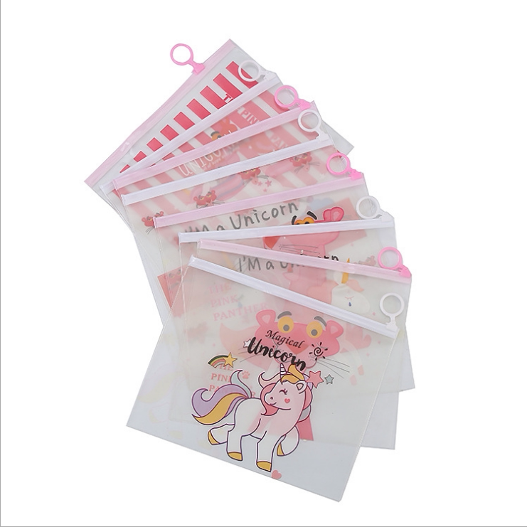 Cute Teenage Girl Hearts Transparent Papers Bag Unicorn Pink Leopard Water Repellent Pen Bag Student Ring Cashier Bag Stationery
