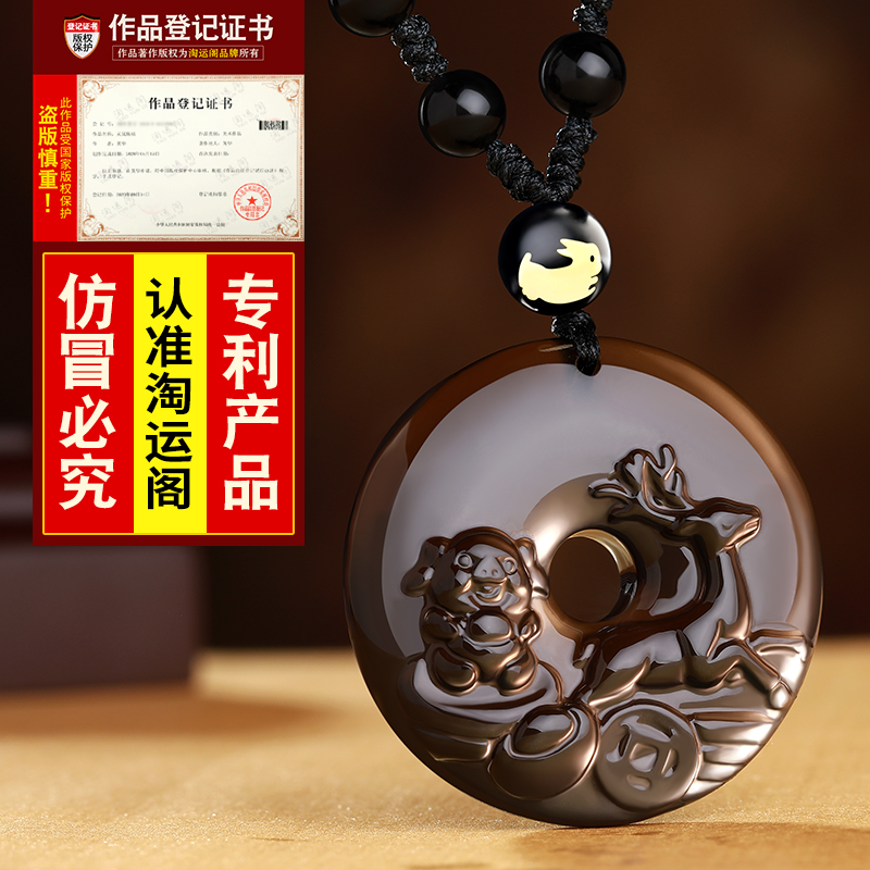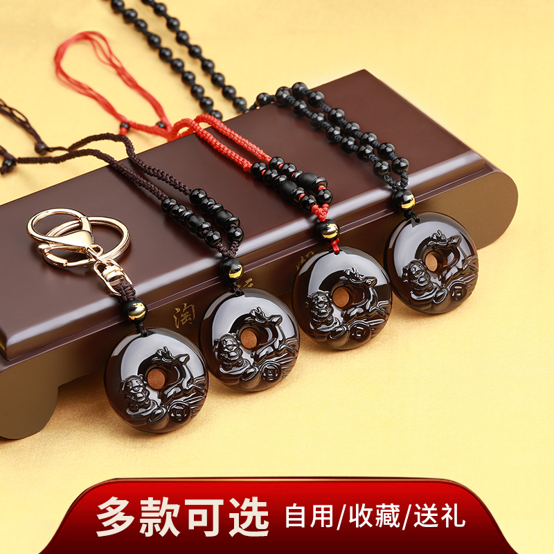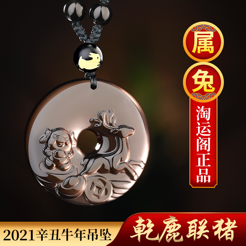 Yi Mingju 2021 rabbit dry deer Pig Obsidian pendant Rabbit mascot Necklace Jewelry Gift