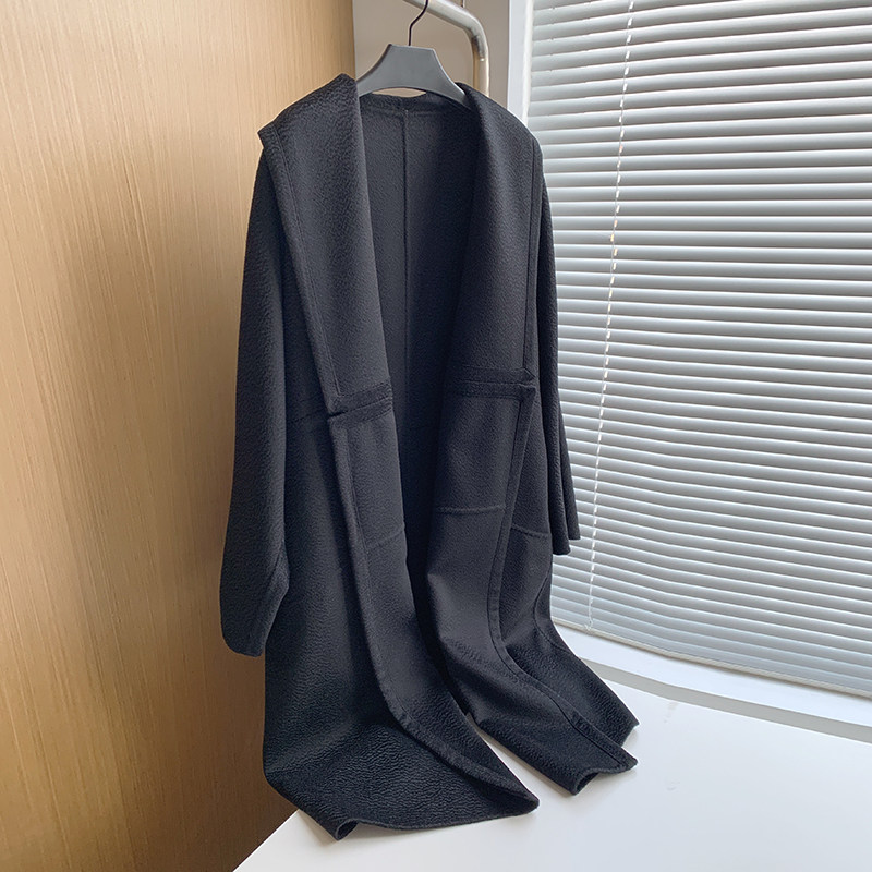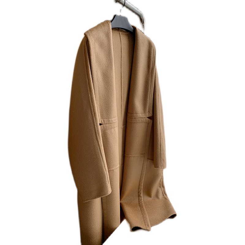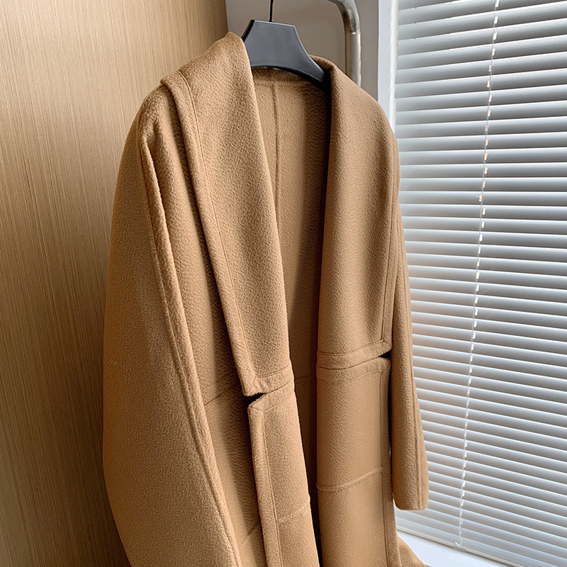Where Aunt's workshop Classic Lean Hump Color Long Version Water Corrugated bifacial cashmere Grand coat woman with long version of the fur coat