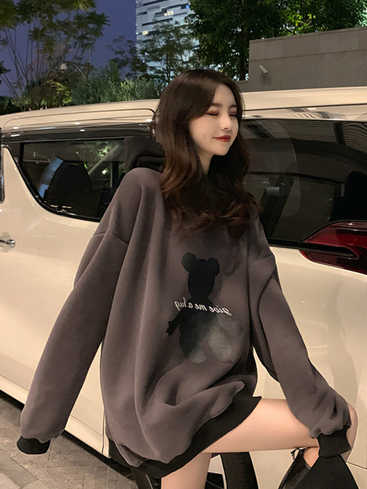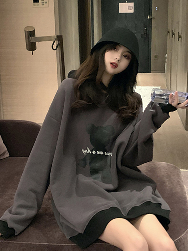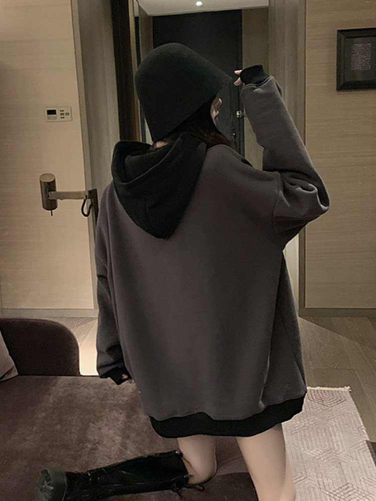 Korean version of gray thick cotton T plus velvet thickened women's autumn and winter new 2020 Hong Kong wind hooded super fire loose top tide large size