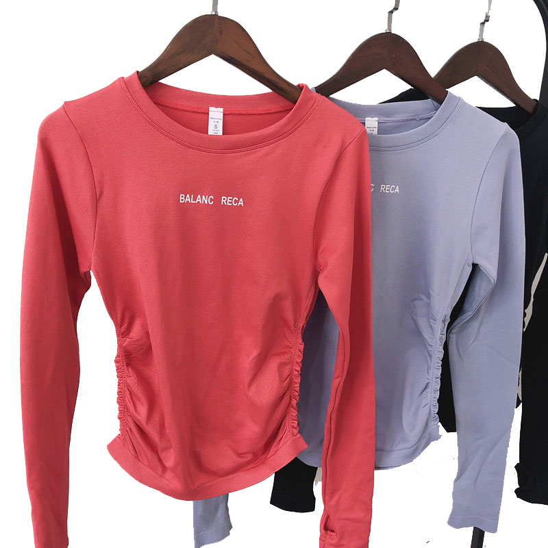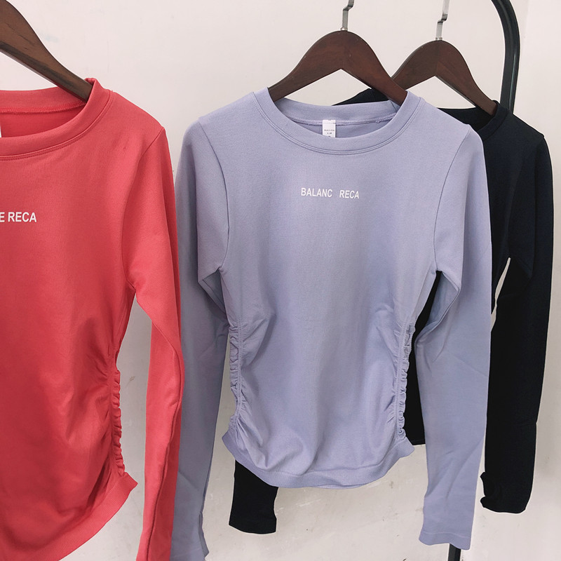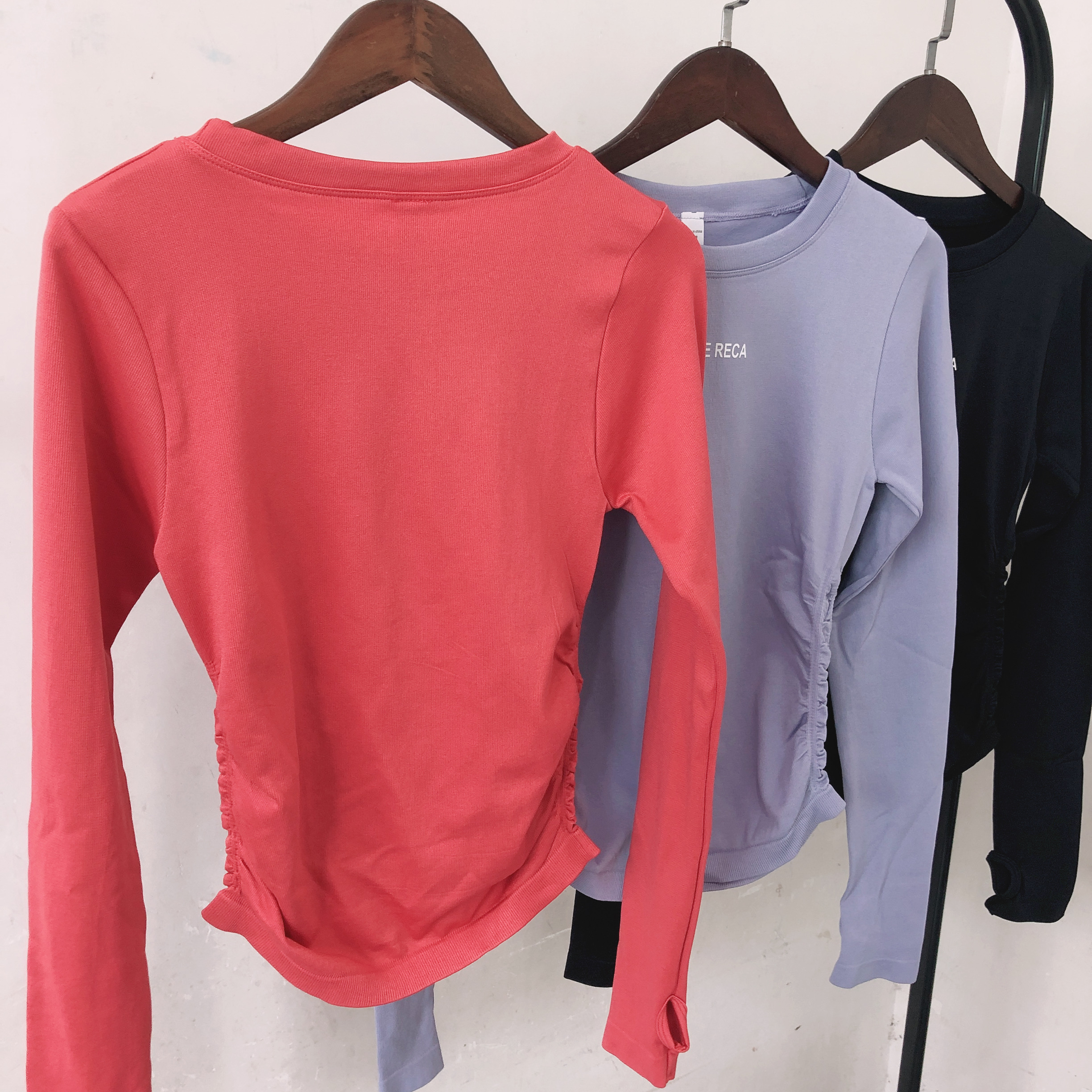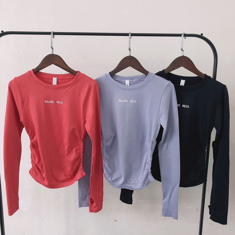 Autumn and winter thick sports top tight sexy waist yoga clothing running fitness women's round neck sleeve finger long-sleeved T-shirt