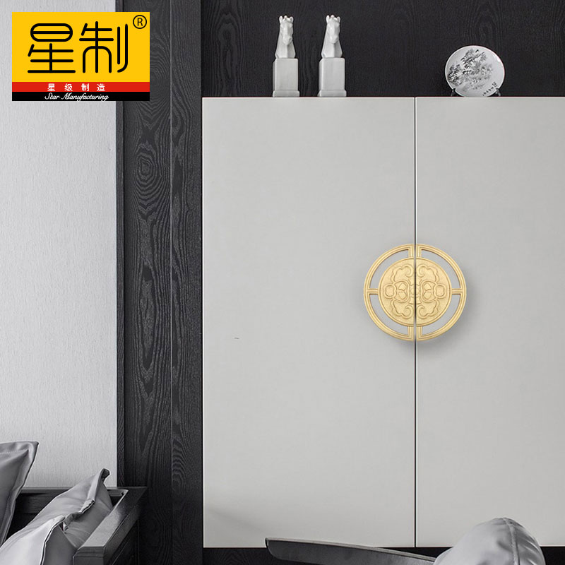 Modern minimalist remodelled antique brass golden cabinet door handle New Chinese light lavish drawers Kitchen Integral Cupboard Furniture