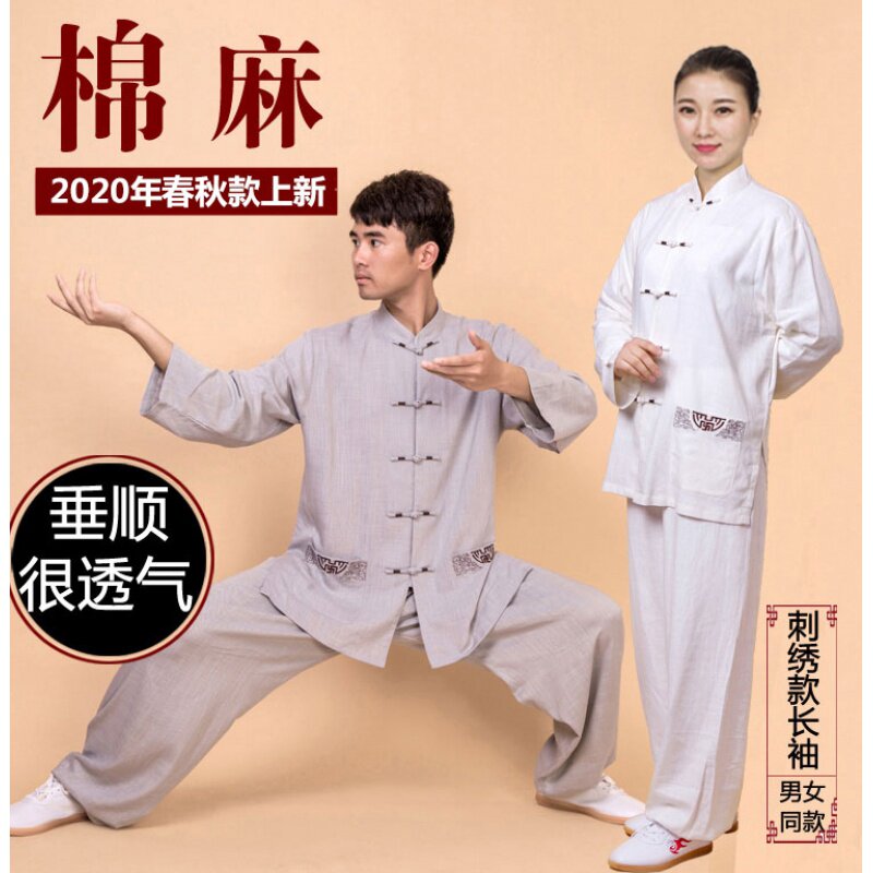 Xiaoheshan Taiji suit men's new cotton and linen thickened spring and autumn linen pants Taijiquan practice clothes women's summer martial arts clothing