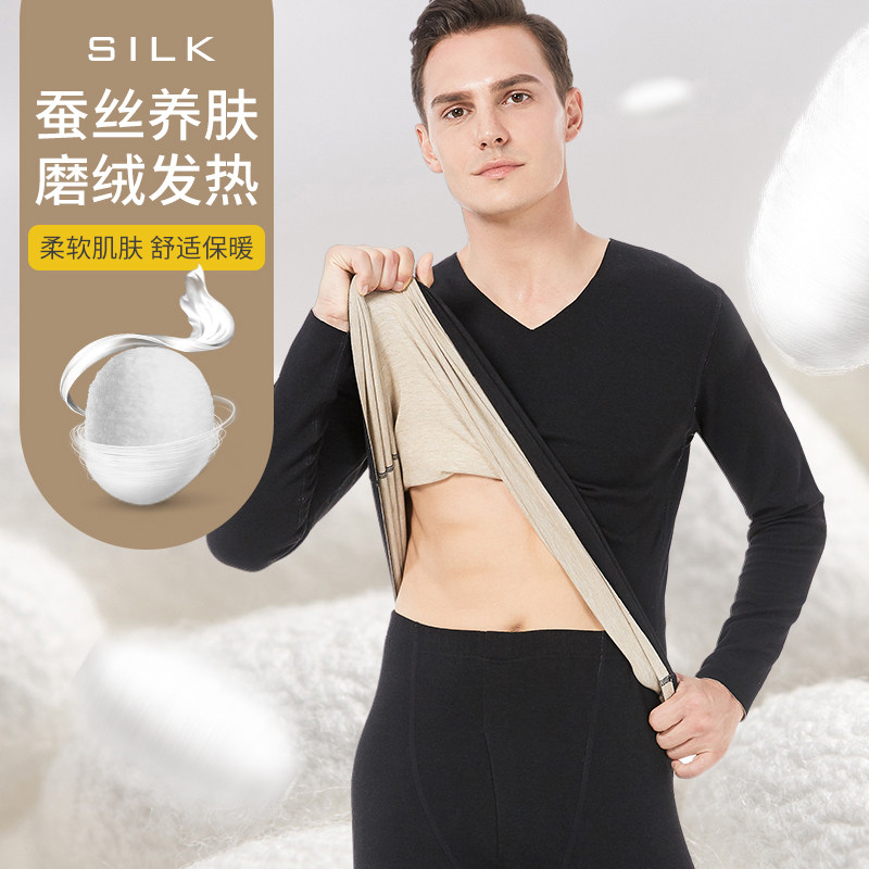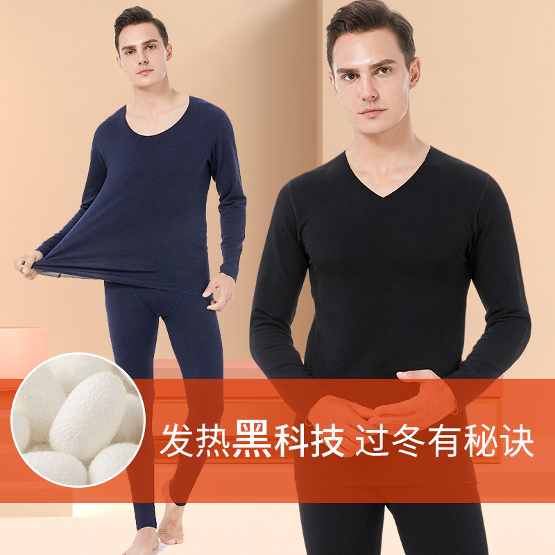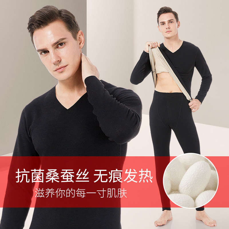 Silk traceless fever heating clothing men's plus velvet thickened Derong Derong constant temperature autumn clothes sanitary pants suit winter