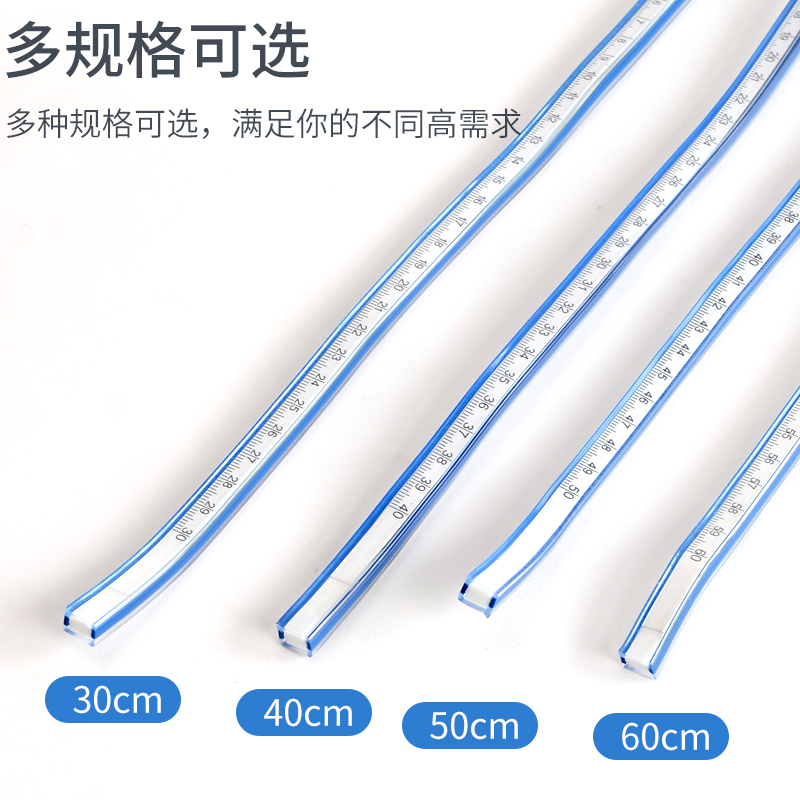 Snake ruler any angle curve ruler soft ruler can bend stereotype 30 40 50 60CM comic clothing construction project creation art painting drawing design ruler male british snake ruler tool