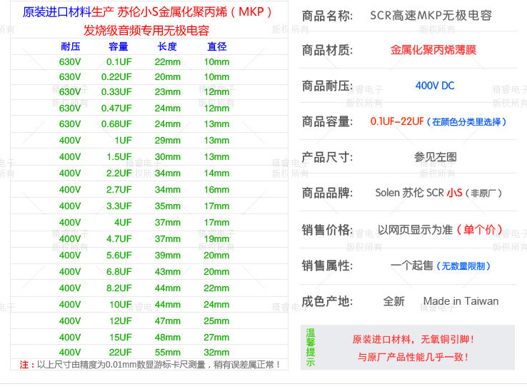 Suren Solen Small S400V2 2UF3 3 4 7 10UF SCR polypropylene film MKP divider capacitor
