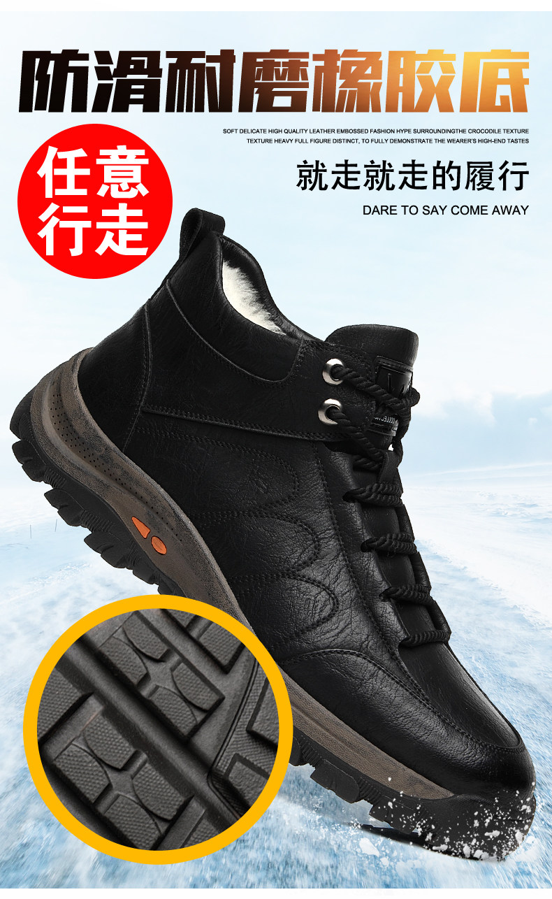 Cotton shoes men's winter new products plus velvet warm sports and leisure high-top leather shoes leather wool waterproof ski boots