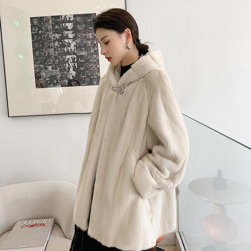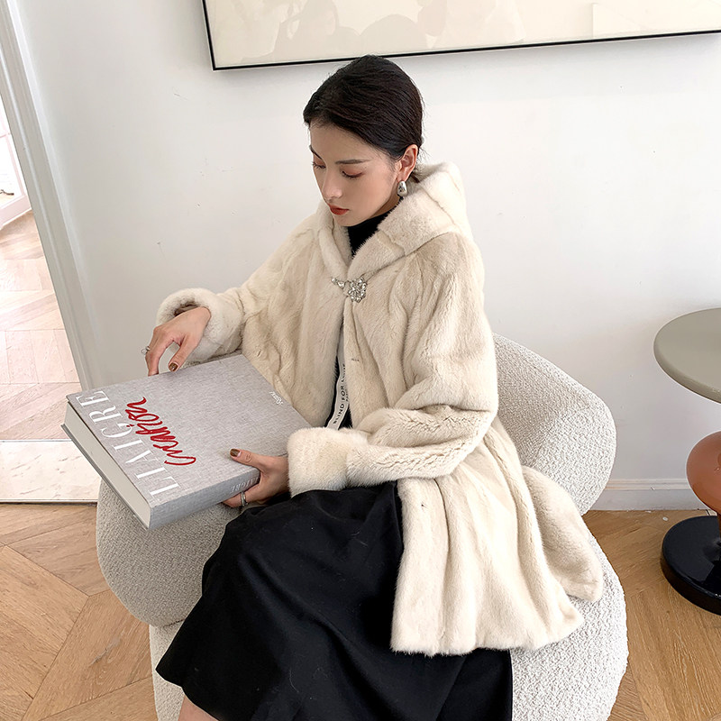 Imported Purple Javi Velvet Mink Fur Coat Woman's Lianhood Little Mother Ferrets Mink Fur Fur Fur Coats Lady Coats