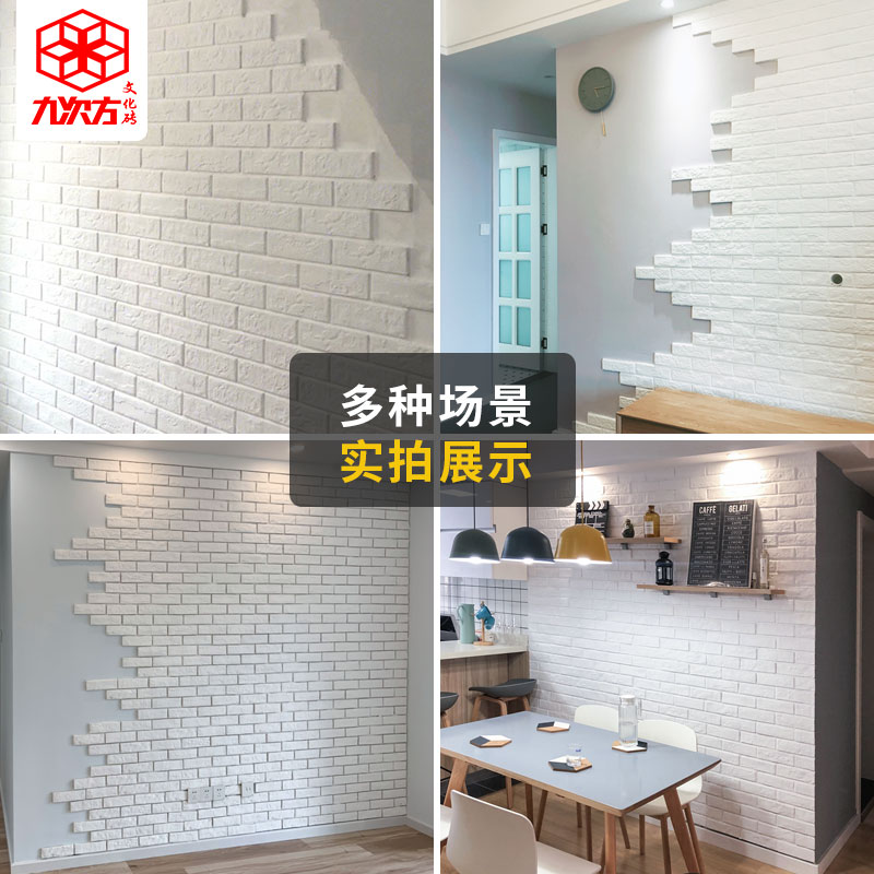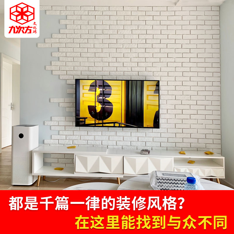 White culture brick Nordic small white brick 3D vintage small strip brick culture stone background wall all-porcelain antique brick living room