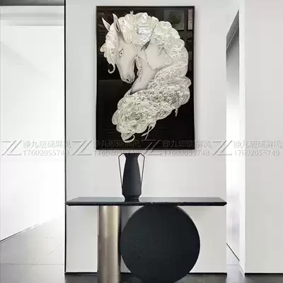 Custom art glass glass handmade enamel color screen wind Hotel Villa living room porch decoration hanging painting Horse series