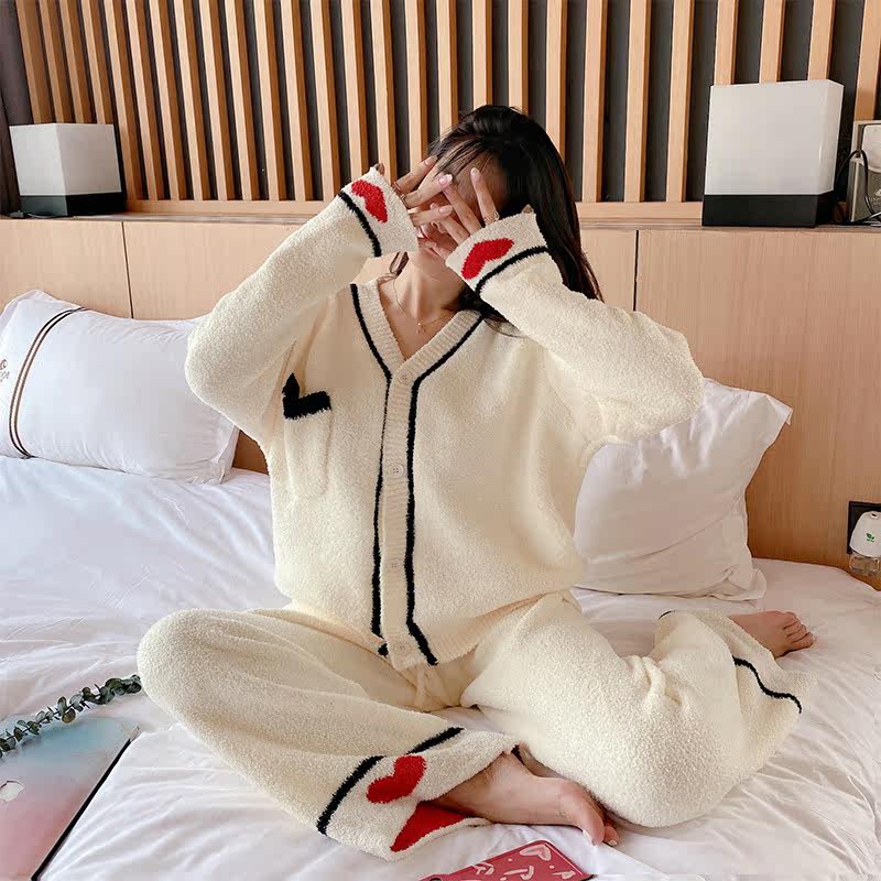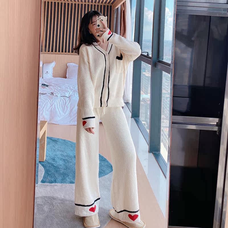Fall and Winter Pyjamas Soft INS Red Wind Knitted Sweater Heat Warm Simple Fame Family Home Clothes