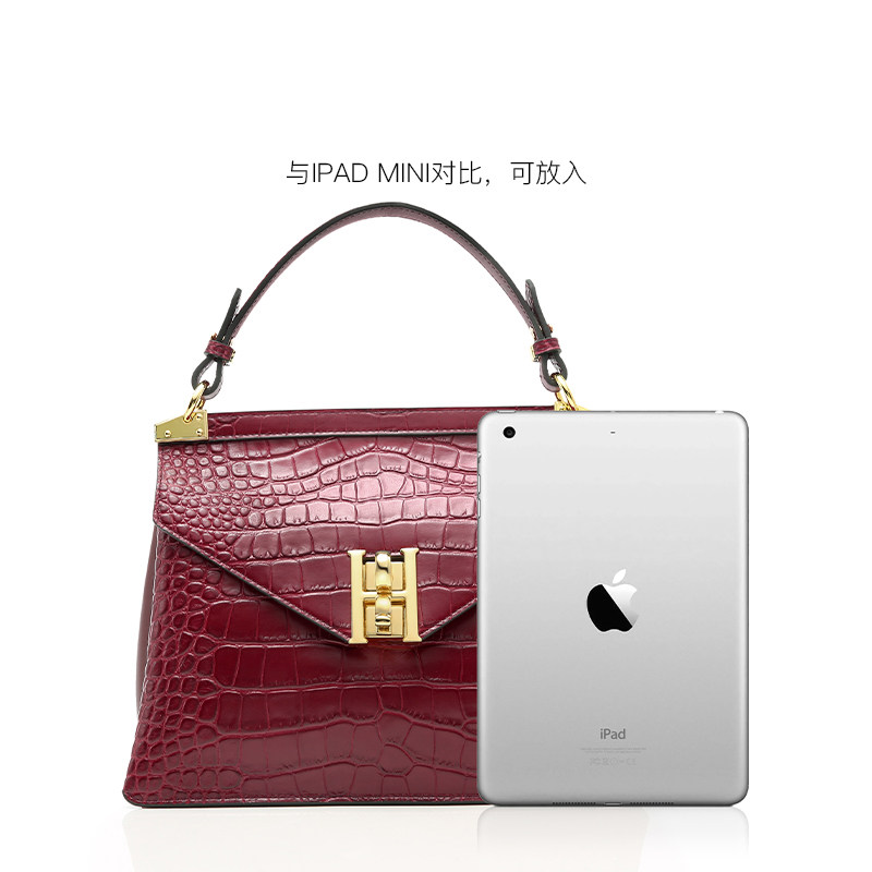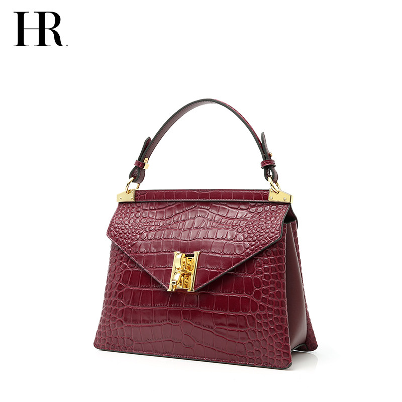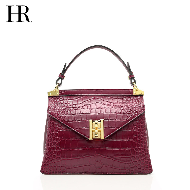 HR Herlena Crocodile Bovine Leather Girl Bag 2022 Early Spring New Slanted Satchel Small Crowddesign Single Shoulder Handbag