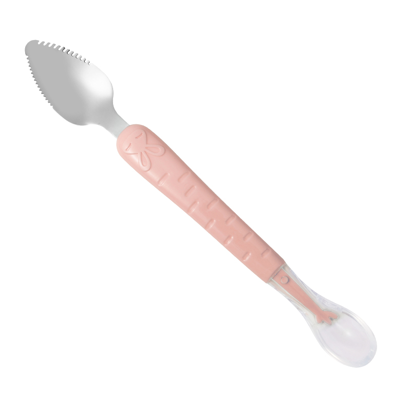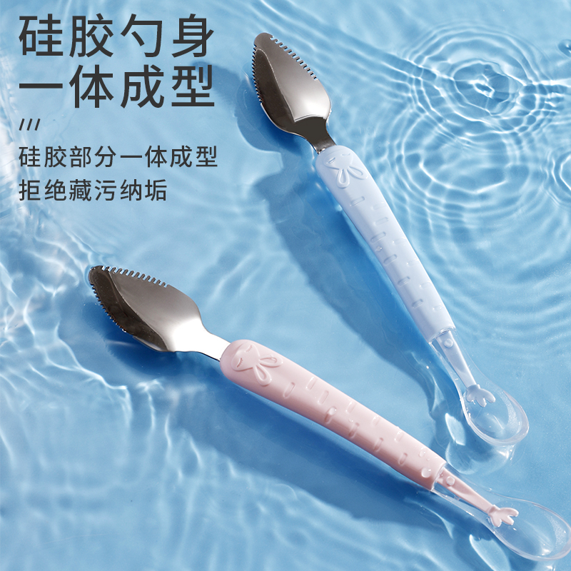 Baby double head Stainless Steel Apple Clay Scraped Spoon Silicone Soft Tablespoon Deputy Food God Ware Baby Fruit Spoon Children Cutlery
