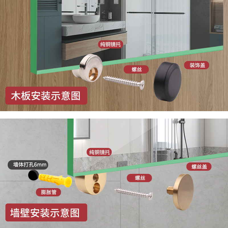 Drill-free pure copper glass mirror advertising nail decoration cabinet stack mirror fixed fixture fittings