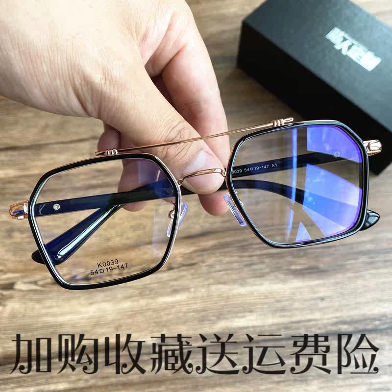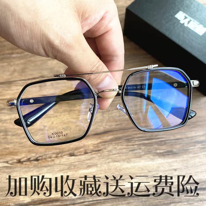 Anti-blue light radiation myopia male transparent frame retro double-beam flying glasses line staff flat light eye frame can be matched with degree female