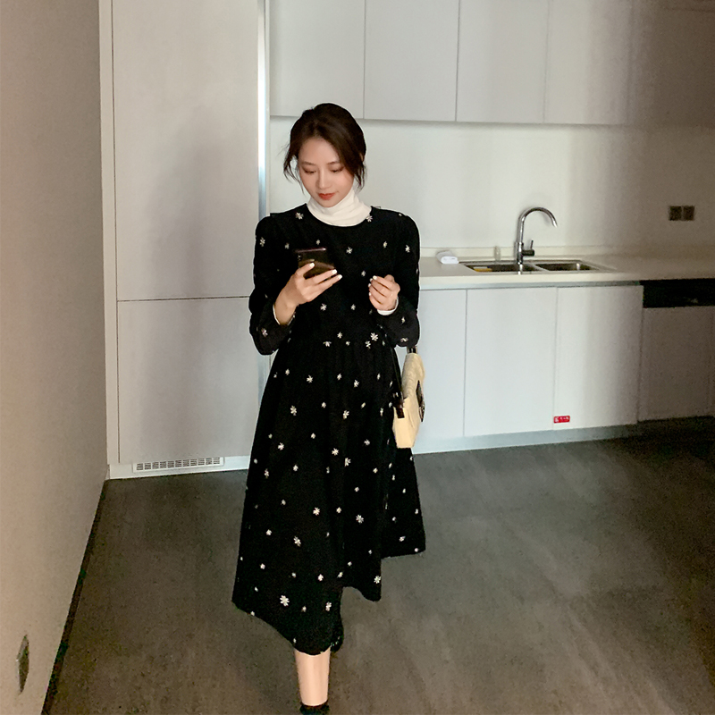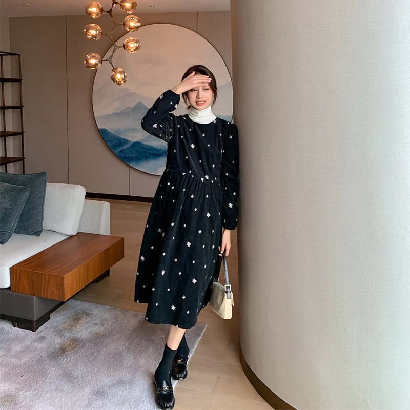 AAM M U M PREGNANCY WOMAN DRESS CODE NEW PRODUCTS ~ TRENDY HIGH COLLAR STACK WEARING SKIRT SNOWFLAKE AUTUMN WINTER LONG SLEEVE FOREIGN DRESS