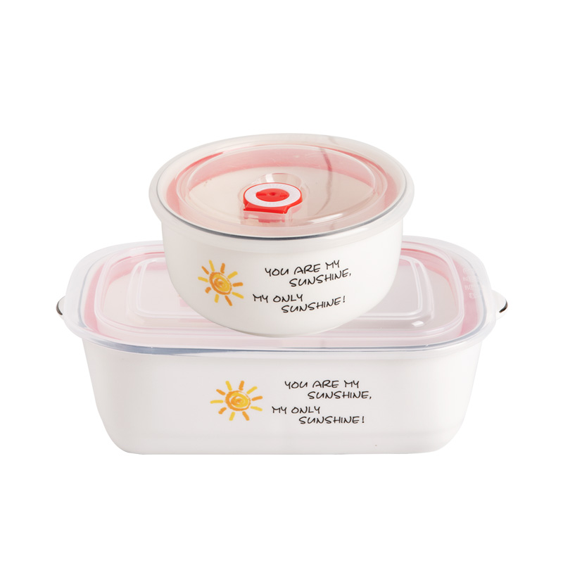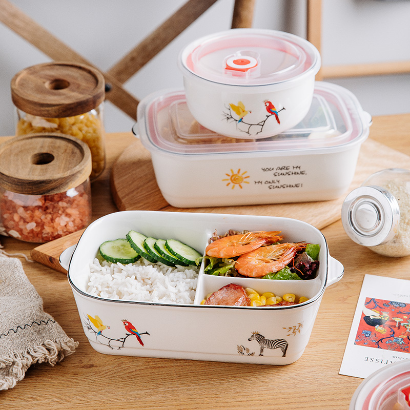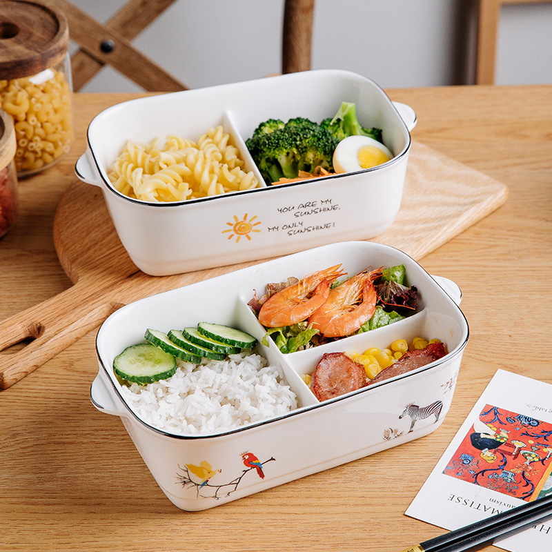 Cartoon black edge ceramic compartment lunch box microwave oven special with lid sealed lunch box office worker with rice fresh-keeping bowl