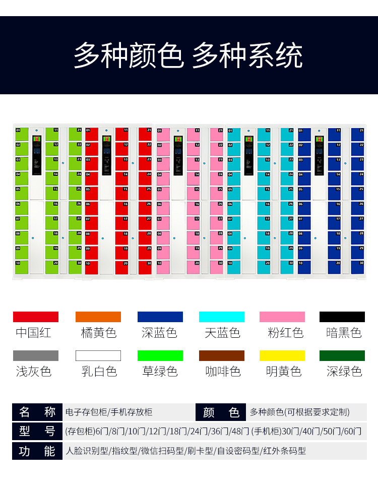Black orange khaki army green light green sky blue light purple violet wine brown color chocolate color dark purple peacock blue rose red pink red blue orange yellow green dark blue camel deep khaki cloth lake blue light yellow fluorescent green fluorescent yellow champagne 12 doors infrared scanning code cabinet 18 door infrared scanning code cabinet 36 doors infrared scanning code cabinet 48 doors infrared scanning code cabinet 12 doors fingerprint identification cabinet 18 door fingerprint identification cabinet 24 door fingerprint recognition cabinet 26 door fingerprint recognition cabinet 48 door fingerprint recognition cabinet 48 door fingerprint recognition cabinet 12 door face recognition cabinet 18 door face recognition cabinet 24 door face recognition cabinet 36 door face recognition cabinet 12 door WeChat scan Code cabinet 18 doors WeChat scanning code cabinet 24 doors WeChat scanning code cabinet 36 doors WeChat scanning code cabinet milky white 48 doors WeChat scanning code cabinet