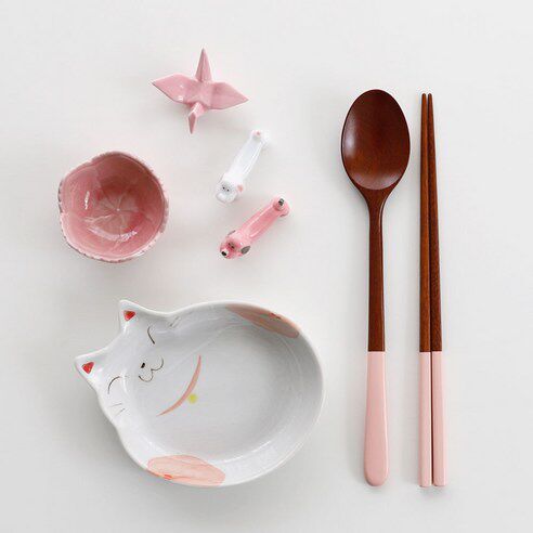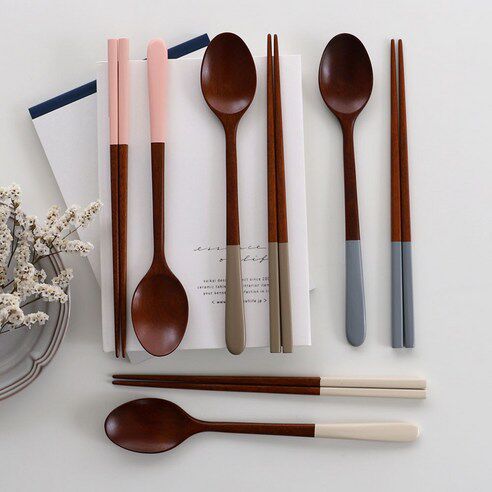 South Korea enters stuttering ondo tableware pland with white paint long handle solid wood spoon chopsticks set rice spoon