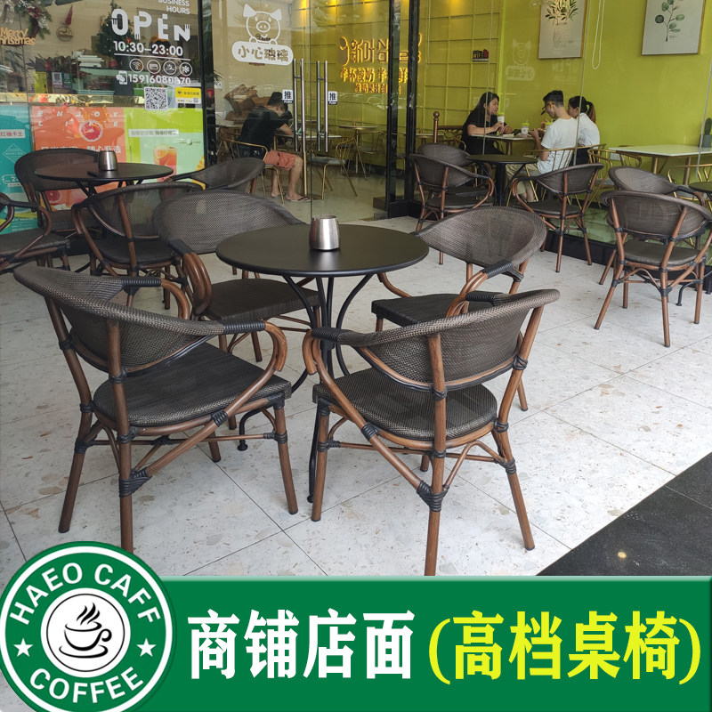 Outdoor table and chairs with umbrella milk tea shop cafe hotel outdoor leisure net red balcony star bar rattan chair set outside
