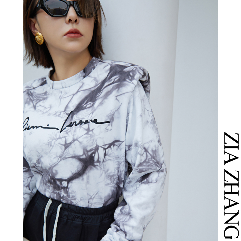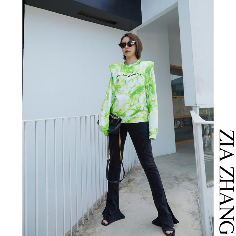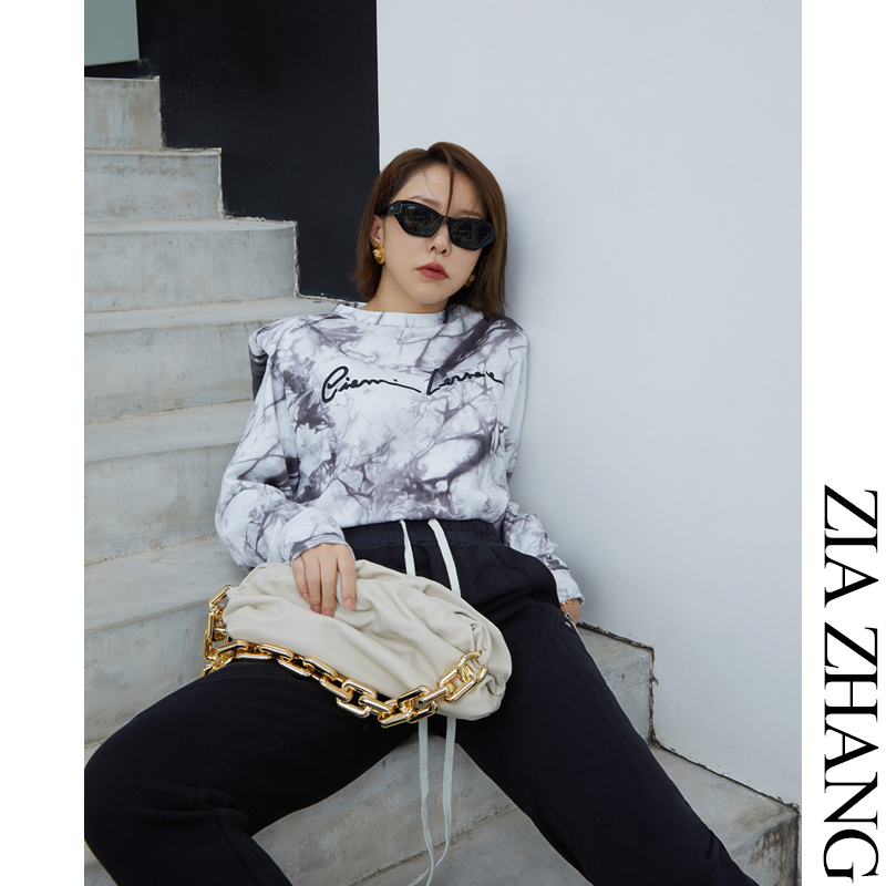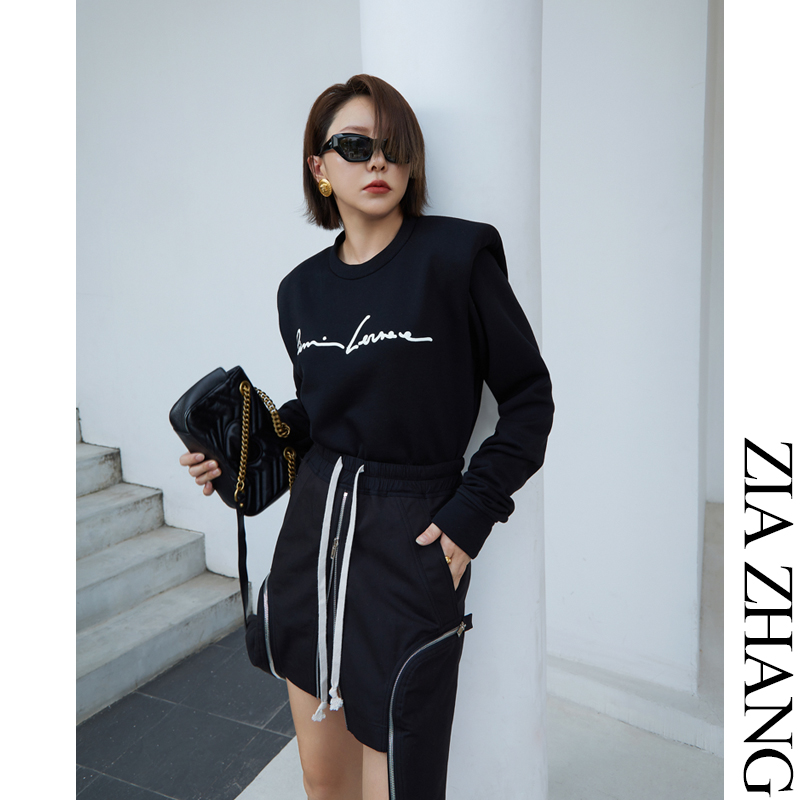 Clear cabin no back for printing medium long straight cylinder flat shoulder inline sleeves necrosary embroidered casual sweatshirt-Taobao