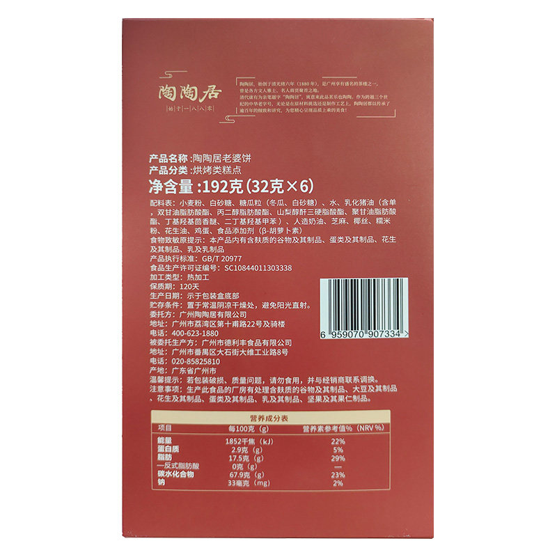 (Tao Tao Resin) Wife cake Zhengzong Traditional Cantonese Traditional Special Handmade Casual Snack Snack packaging box