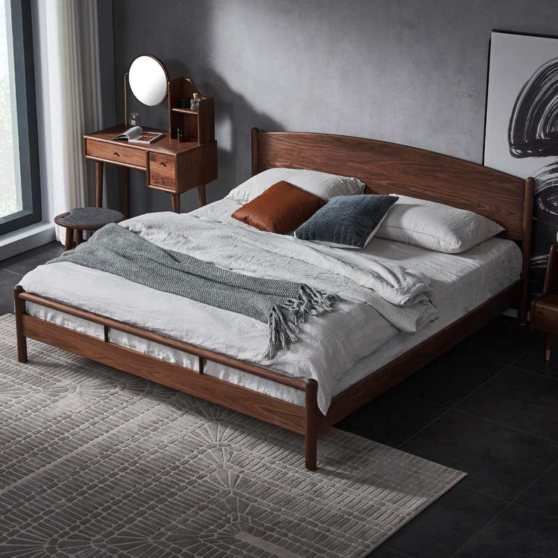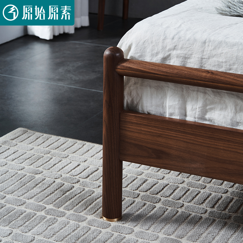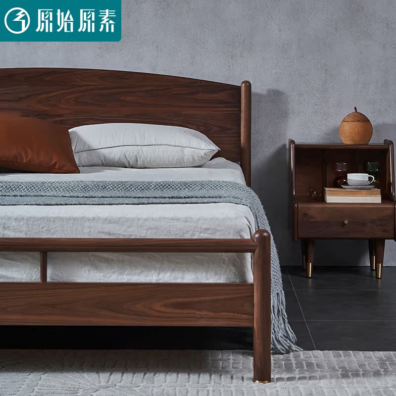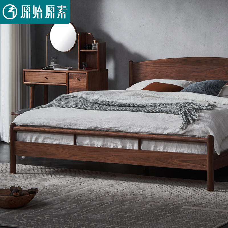 Original original full solid wood bed Modern simple North American black walnut 1 8 meters 1 5 master bedroom double bed I8011