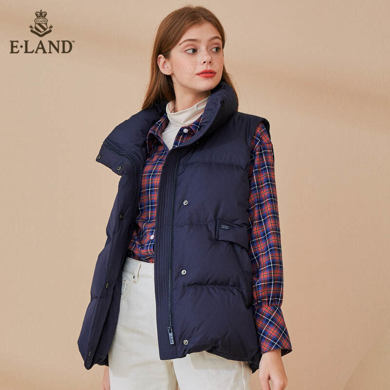 ELAND clothing love winter stand-up collar design double side pockets simple solid color down jacket horse clip women's clothing