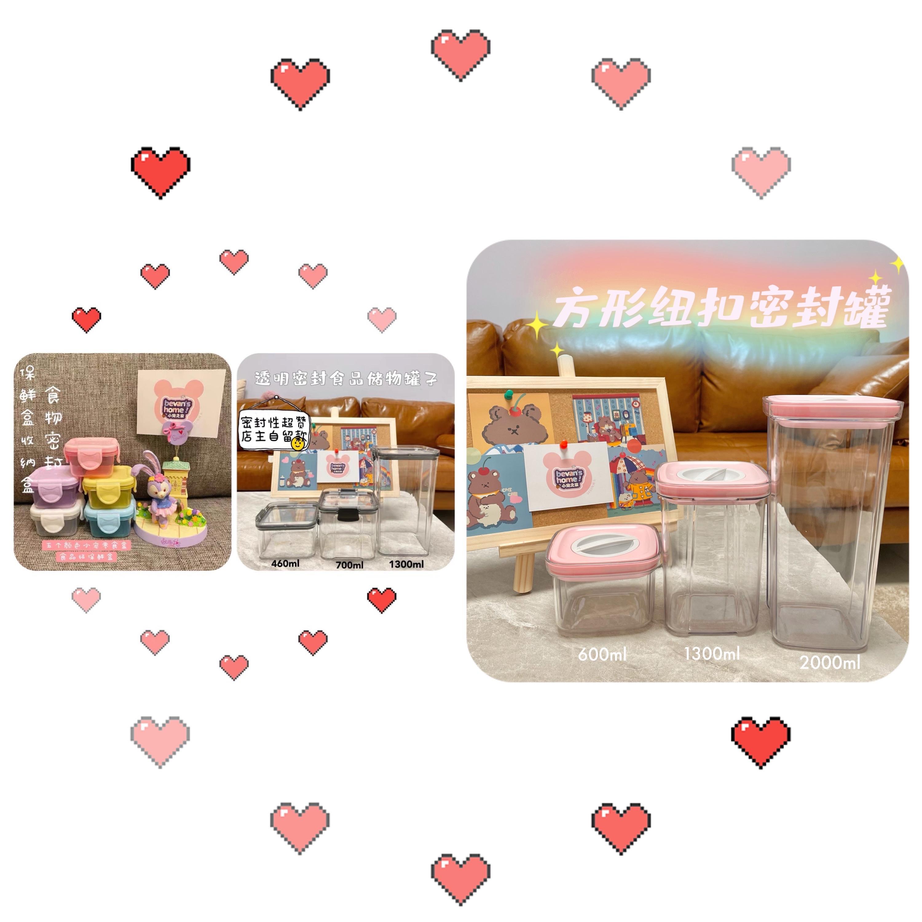 Square button sealed jar 2000ml Square button sealed jar 1300ml Square button sealed jar 600ml transparent sealed box 1300ml transparent sealed box 700mlm