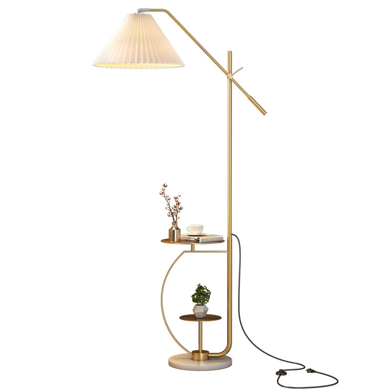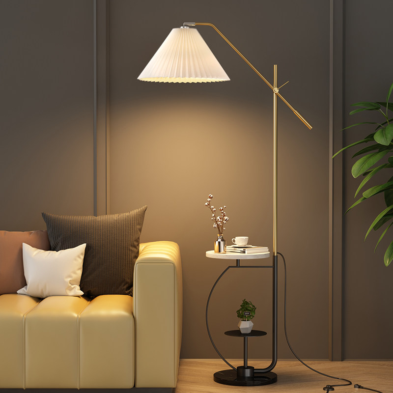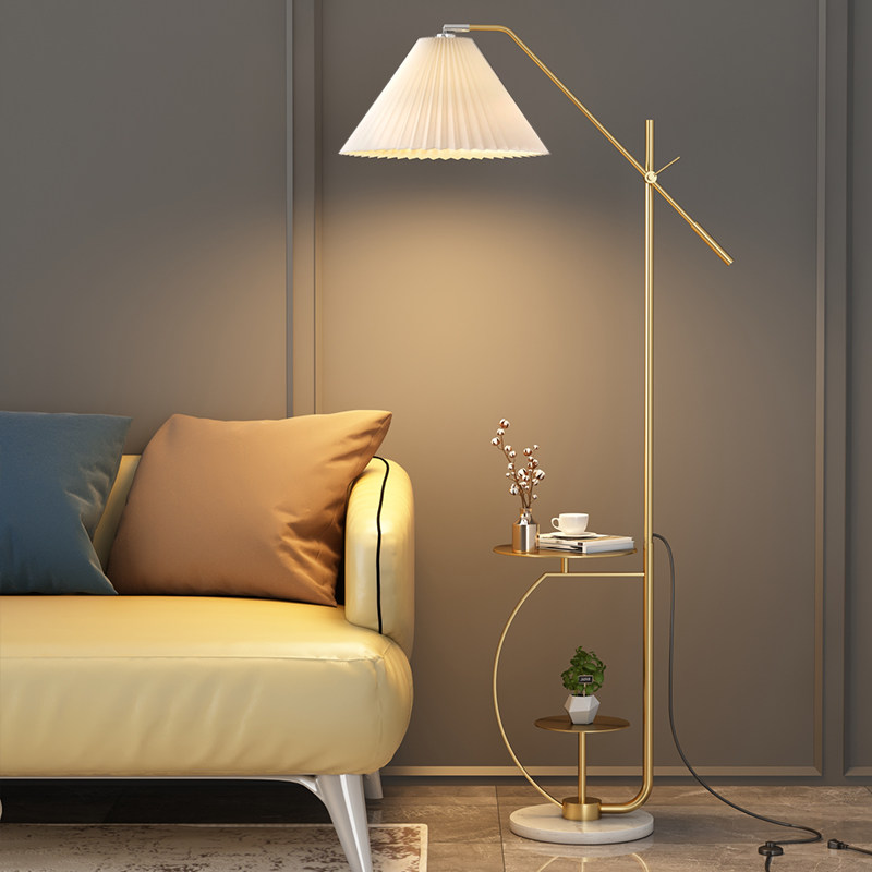 Nordic ins wind fishing floor lamp pleated living room light luxury wireless charged American retro bedroom bedside lampstand lamp