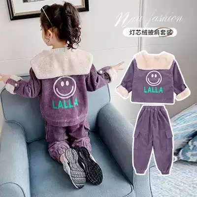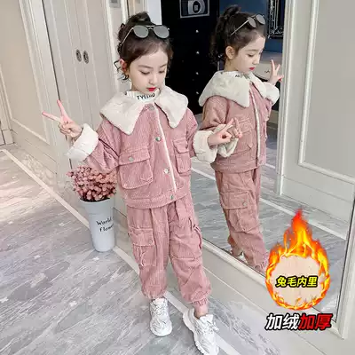 Girls plus velvet set autumn and winter 2020 new girls thick coat New Year dress Spring Festival Net Red foreign style two sets
