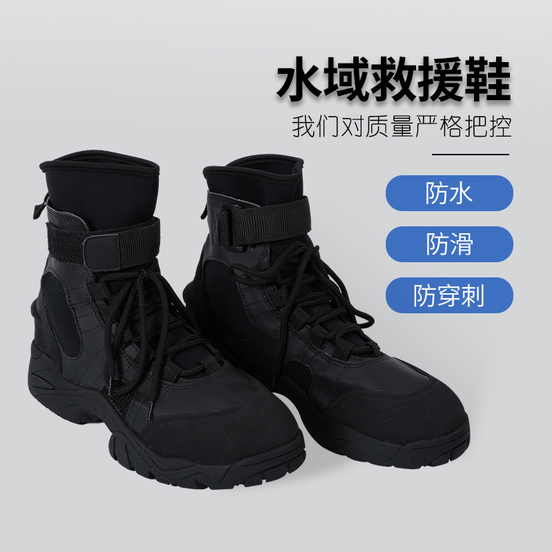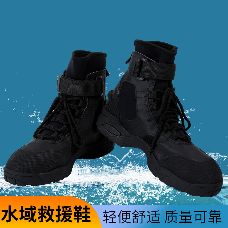 Waters Rescue Boots Black Firefighting Ice Surface Special Rescue Shoes High Cylinder Anti Slip Protection Light Water-related Adventure Shoes