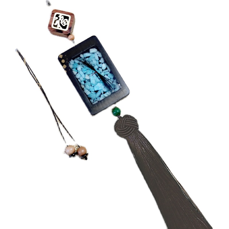 Blue turquoise sandalwood car pendant Brown tassel blue turquoise sandalwood car pendant red tassel blue turquoise sandalwood car pendant green tassel southern red sandalwood car pendant Brown tassel southern red sandalwood car pendant green