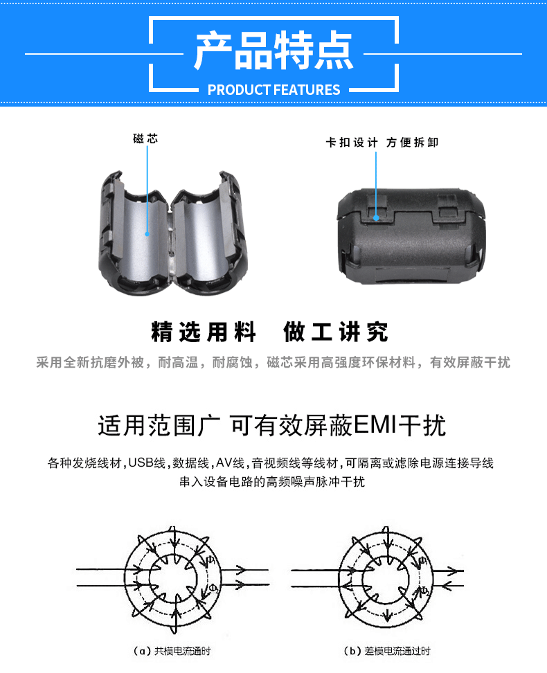 Magnetic ring with magnetic core shield degaussing filtering anti-interference instrumental degaussing ring buckle type high frequency filtering magnetic ring