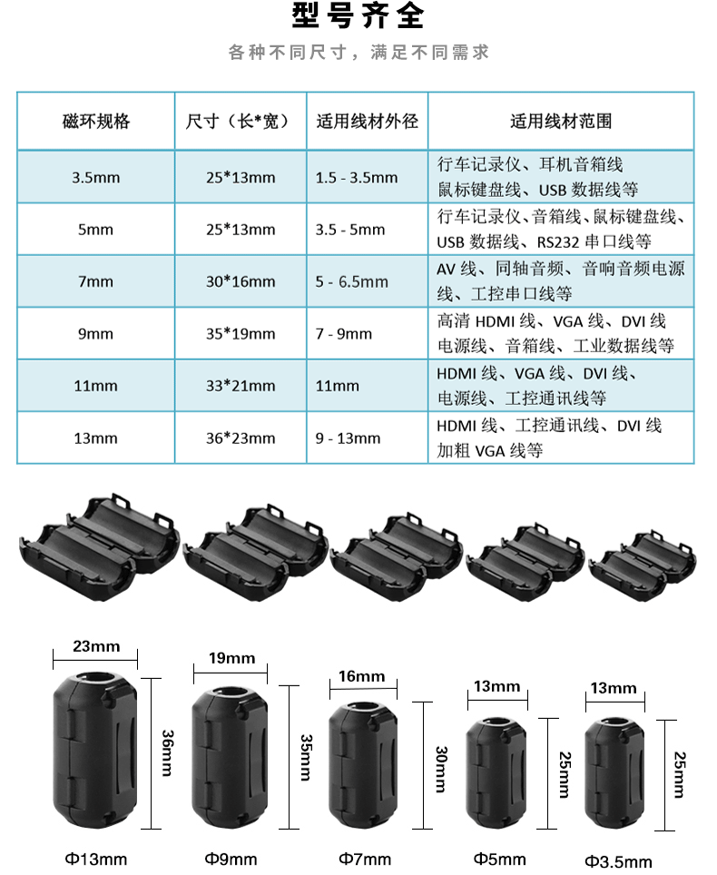 3 5mm black magnetic ring (10) 5mm black magnetic ring (10 support) 7mm black magnetic ring (10 support) 9mm black magnetic ring (10 support) 11mm black