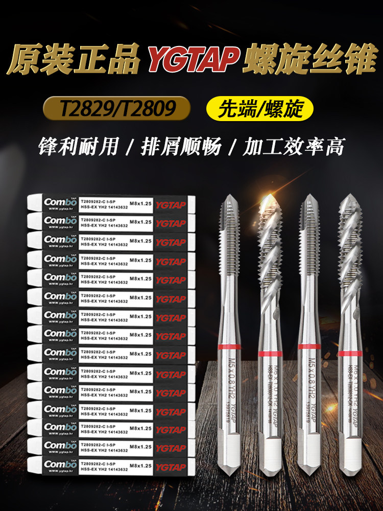 South Korea imports YG machine to tap M2M3M4M5M6810m12 first end screw tap with spiral screw with stainless steel copper iron aluminum