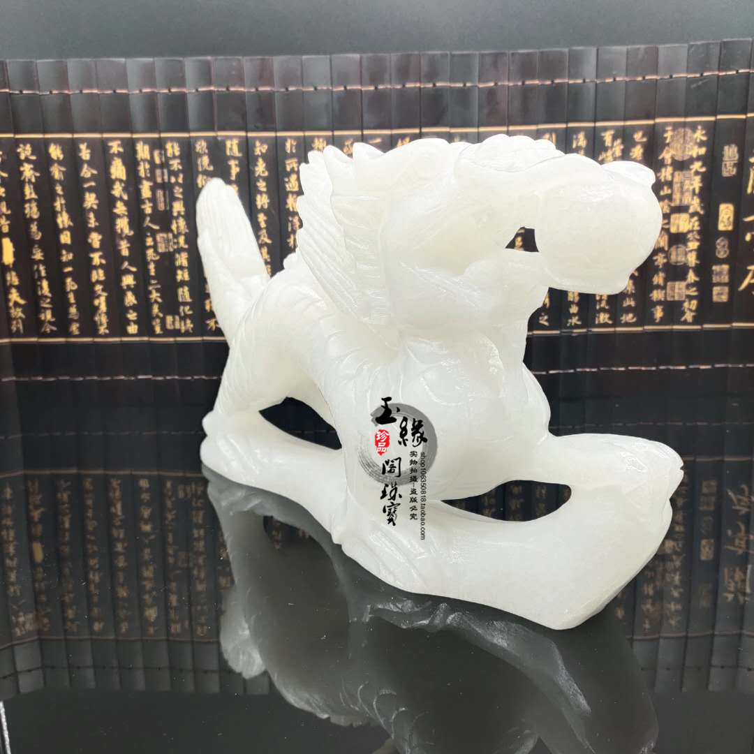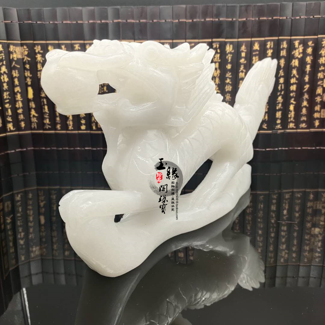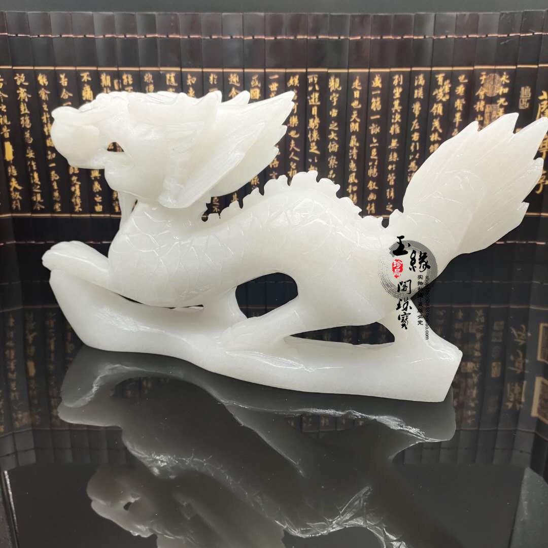 Natural white jade dragon piece Qinglong jade zodiac Shaw Longyu engraving room study desktop home craftsGift decoration