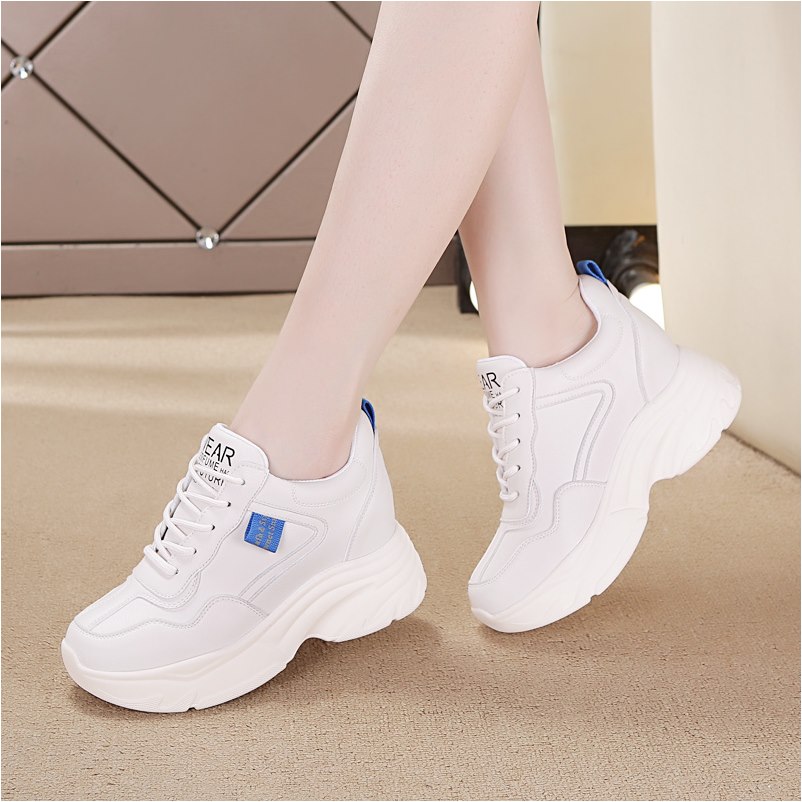 Leather sneakers 2022 new autumn and summer all-match fashion thin women's shoes casual inner height increase old shoes small white shoes
