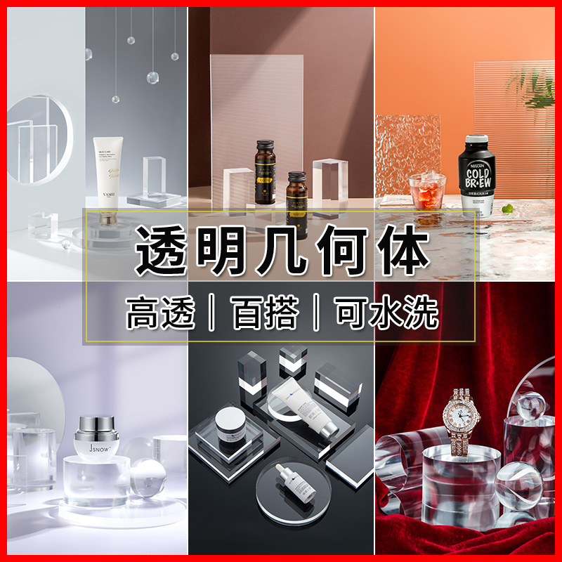 Acrylic transparent geometric pendulum shooting props ins wind beauty skin care products cosmetics jewelry photo scene round cylindrical spherical square combination photography ornaments